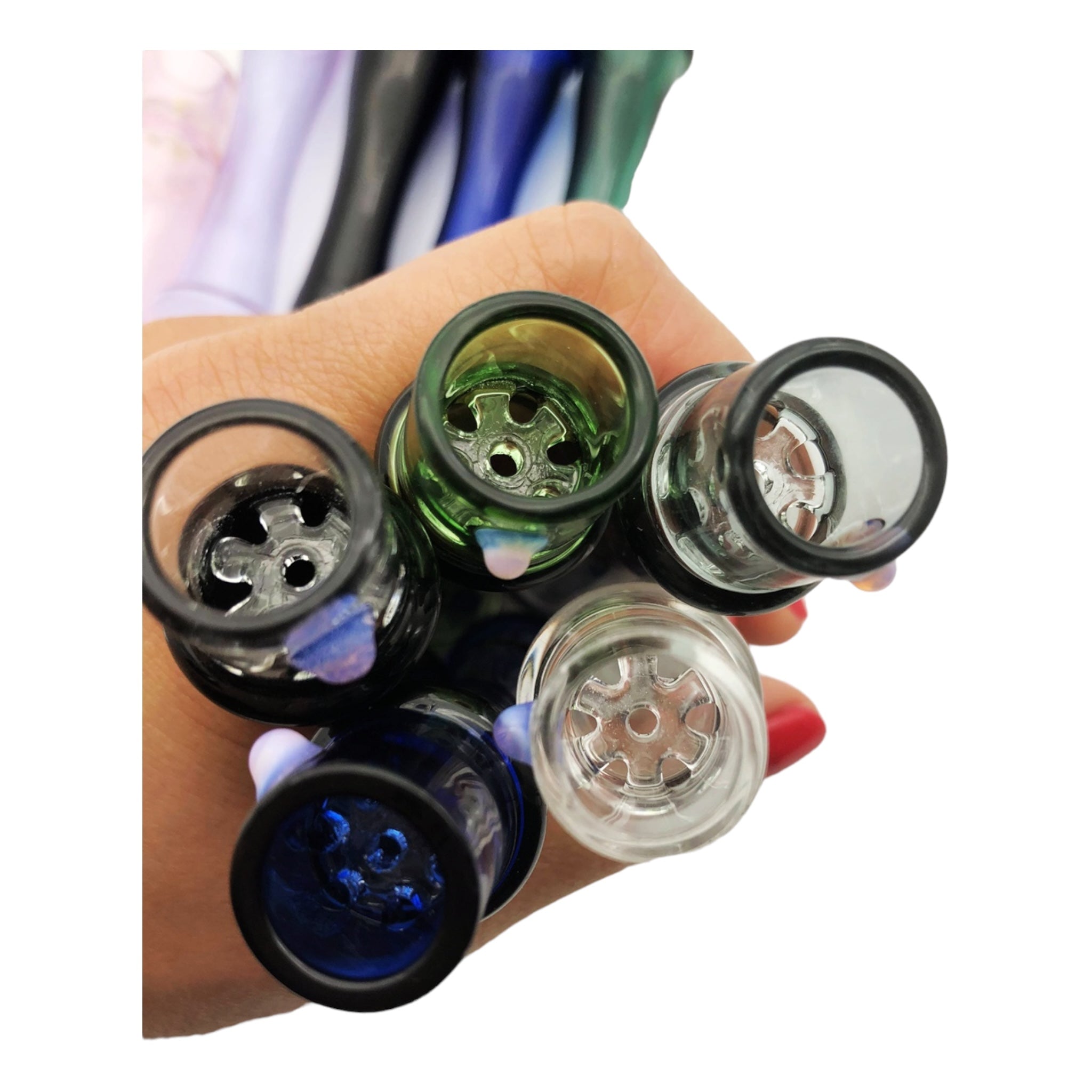 The Chillum style Glass Spoon Pipes feature 7 airhole snow flake screens, which make sure that you can enjoy smooth hits as the air hole helps to smooth everything and easily rinse off.